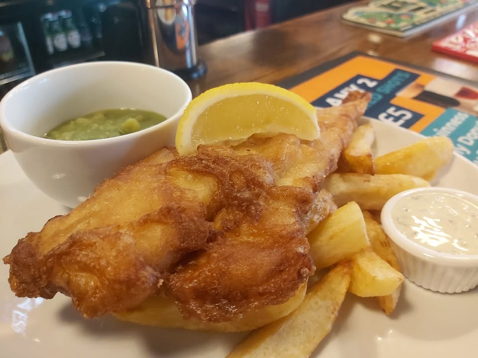Here is the revised post: "FISH FRIDAY at The Bull! Get your taste buds dancing with our Fresh Beer Battered Fish and Handcut Chips! Crisp, golden fish, served with a side of mushy peas and a pint of your favourite brew! Come and indulge in the ultimate Friday treat! Today from 12 to 7pm. See you there, fish lovers! #TheBull #FishAndChips #FridayFeeling"