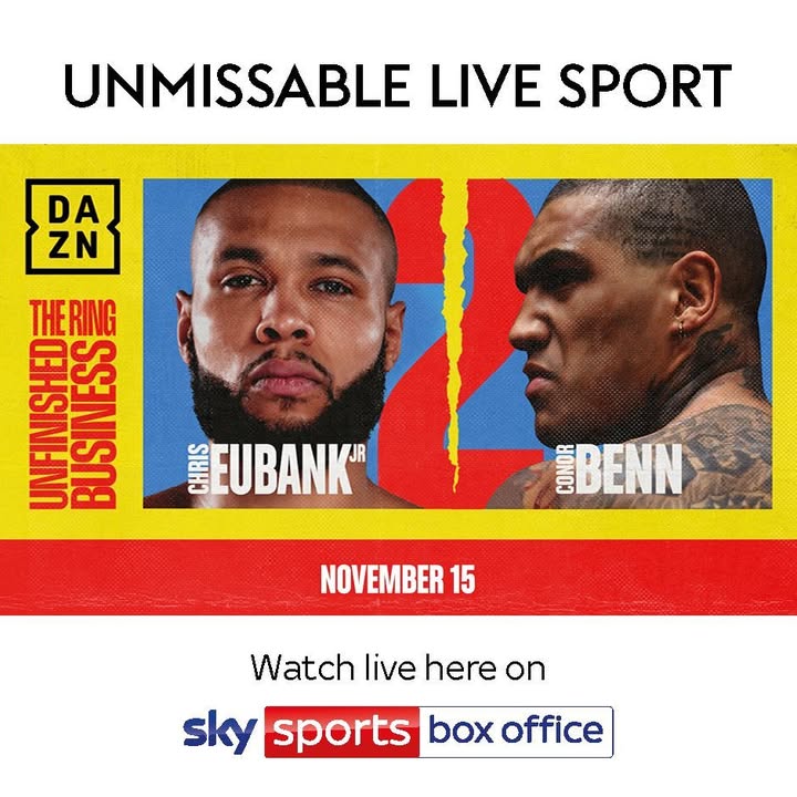 Eubank Jr vs Benn: Boxing Supremacy Showdown! The Bull Bedford brings you the ultimate fight night experience! Join us live on Saturday, 15th November, as Chris Eubank Jr takes on Conor Benn in a thrilling middleweight clash at Tottenham Hotspur Stadium. Witness world-class boxing, enjoy fantastic food and drink deals, and be part of the electric atmosphere with fellow fight fans! Main Event: Eubank Jr vs Benn - 10:00pm Book your table now and don't miss out on the excitement! Call us to reserve your spot!
